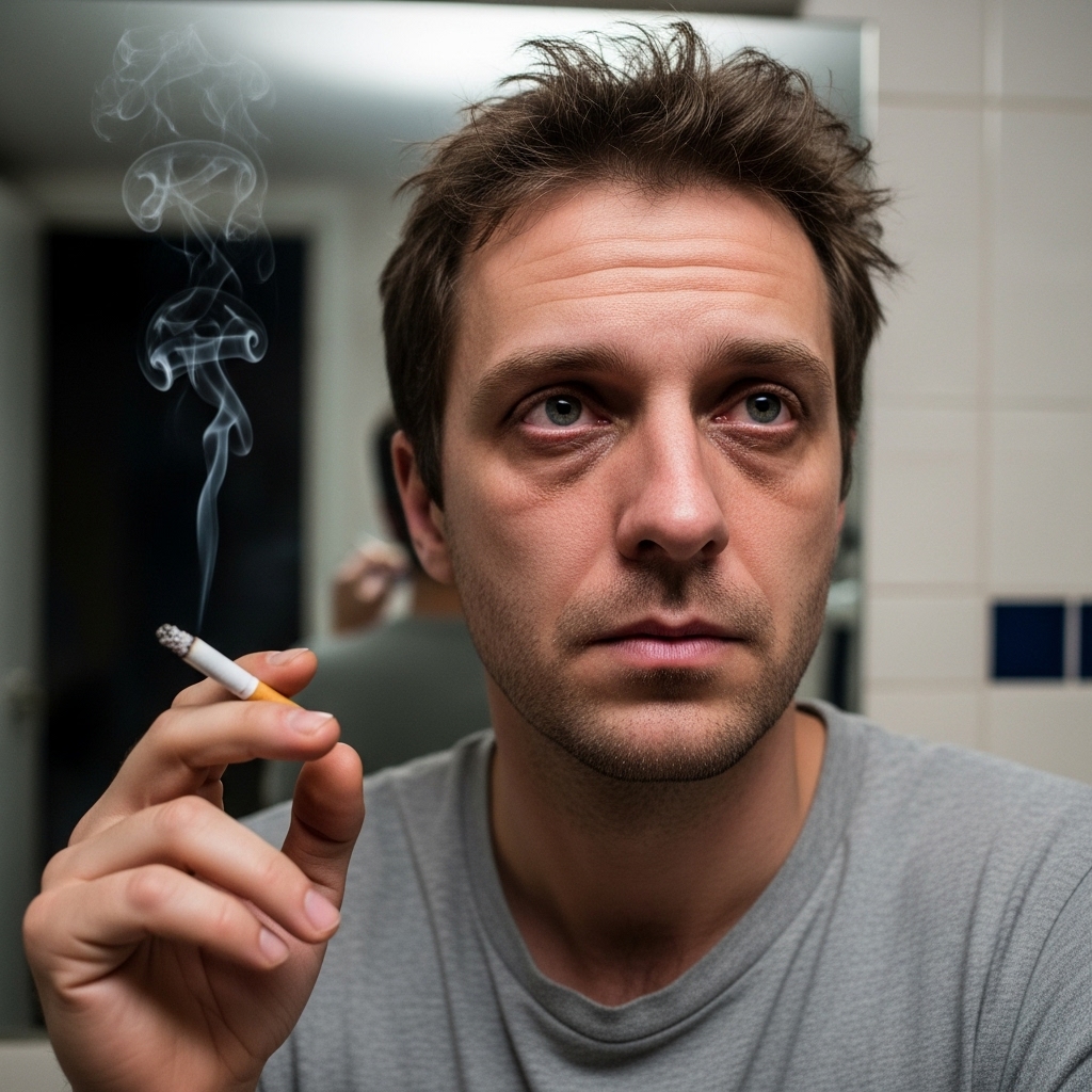 Waking up disgusted with yourself, coughing up tar, immediately craving a cigarette just to feel "normal"